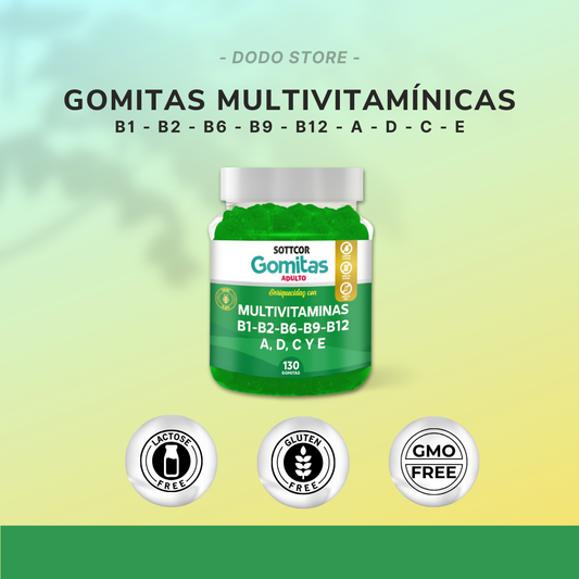 Gomitas Multivitamínicas – Vitaminas B1, B2, B6, B9, B12 + A, D, C y E | 130 gomitas